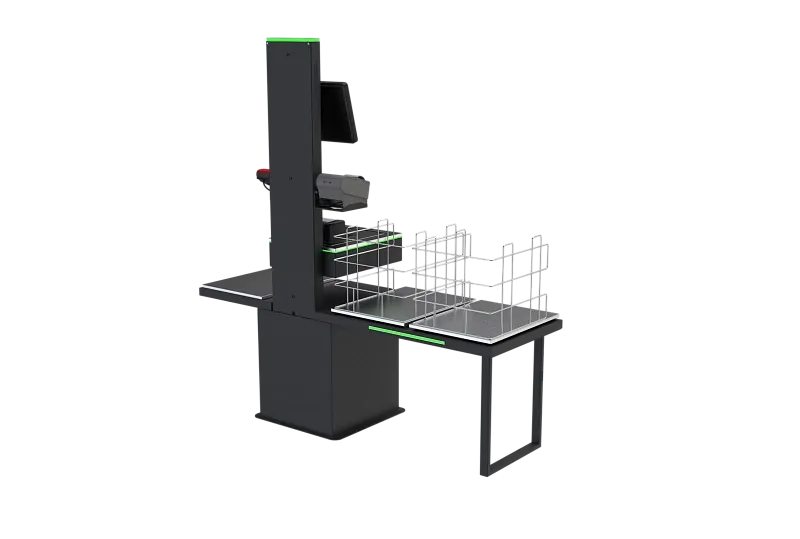 Self-Checkout занимает меньше места, чем стандартная касса, а поэтому на одной и той же по размеру территории касс самообслуживания может разместиться в разы больше. Стандартное соотношение: 1 обычная касса занимает ту же территорию, что и 4 кассы самообслуживания. Кассир при таком раскладе остаётся один и выполняет минимум функций: помогает тем, кто ещё не умеет работать с кассой самостоятельно и проверяет возраст при покупках 18+.