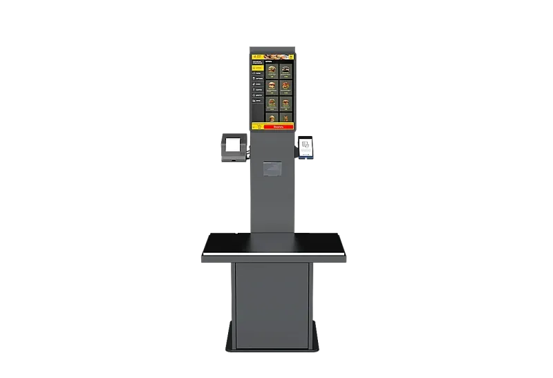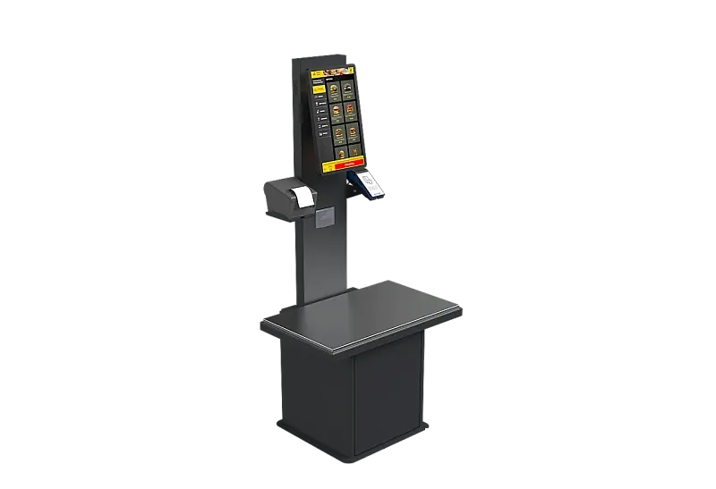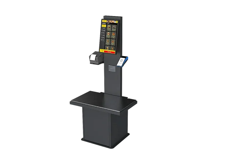 После оплаты чековый принтер отдаёт чек, и покупатель может забрать свои покупки.