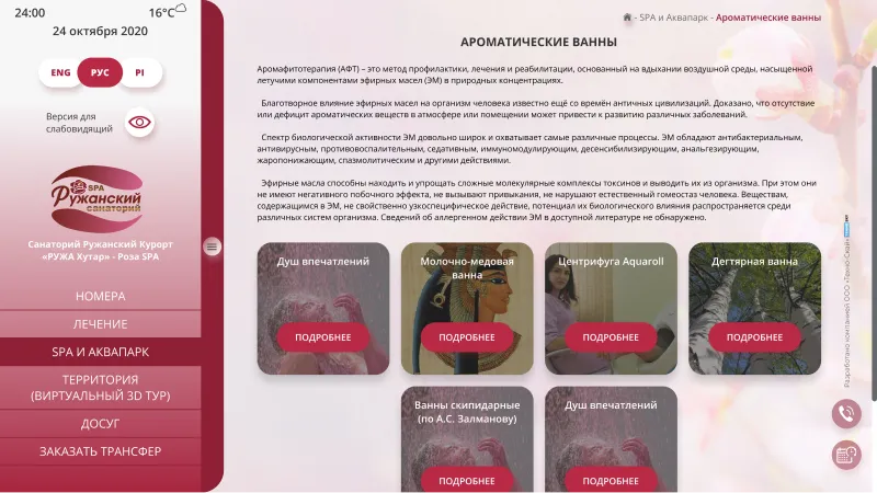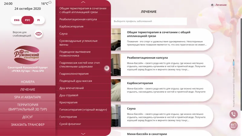 Для отдыхающих в санаториях: информация о процедурах, номерах, новостях и booking.